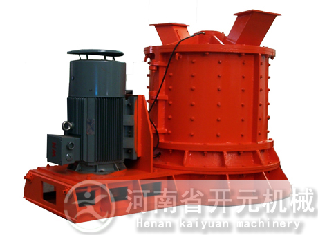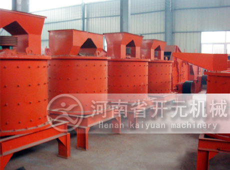 四周的物料產(chǎn)生高速撞擊與粉碎,物料在互相撞擊后,又會在葉輪和機殼之間以物料形成渦流多次的互相撞擊、摩擦而粉碎,從下部直通排出,形成閉路多次循環(huán),由篩分設(shè)備控制達到所要求的成品粒度。