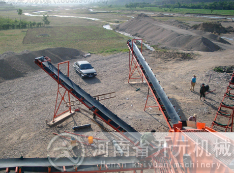 膠帶輸送機(jī)也可以叫做皮帶輸送機(jī)、帶式輸送機(jī),我公司生產(chǎn)的膠帶輸送機(jī)廣泛應(yīng)用于選礦行業(yè)物料的輸送,對(duì)于選礦工藝生產(chǎn)線來(lái)說(shuō),一般膠帶輸送機(jī)都要視客戶現(xiàn)場(chǎng)情況訂做。膠帶輸送機(jī)技術(shù)結(jié)構(gòu)簡(jiǎn)單,易于維修,常常被用來(lái)做各種選廠的輸送設(shè)備。