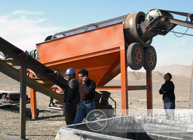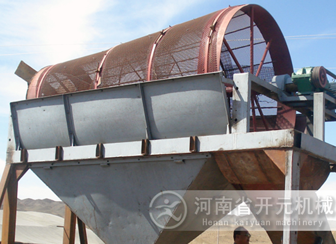 滾筒裝置傾斜安裝于機架上。電動機經(jīng)減速機與滾筒裝置通過聯(lián)軸器連接在一起,驅(qū)動滾筒裝置繞其軸線轉(zhuǎn)動。當(dāng)物料進(jìn)入滾筒裝置后,由于滾筒裝置的傾斜與轉(zhuǎn)動,使篩面上的物料翻轉(zhuǎn)與滾動,使合格物料(篩下產(chǎn)品)經(jīng)滾筒后端底部的出料口排出,不合格的物料(篩上產(chǎn)品)經(jīng)滾筒尾部的排料口排出。由于物料在滾筒內(nèi)的翻轉(zhuǎn)、滾動,使卡在篩孔中的物料可被彈出,防止篩孔堵塞。滾筒篩砂機、滾筒篩分機與滾筒篩的原理構(gòu)造幾乎相同,是人們對它的認(rèn)識和叫法上存在差異。