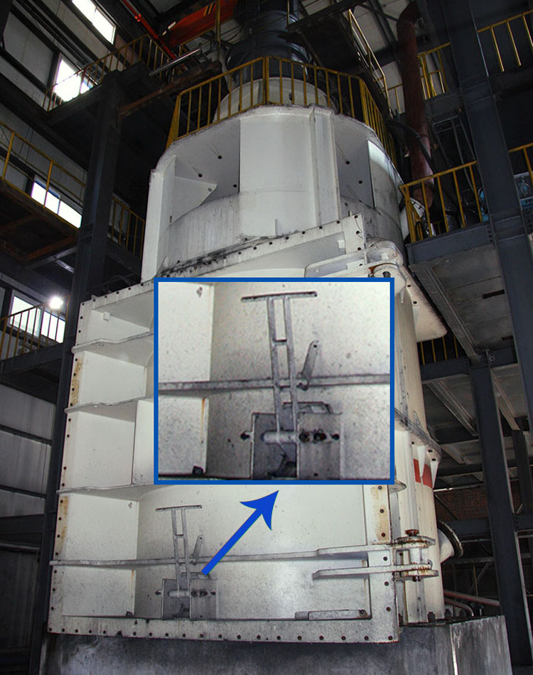 該設備工作時在低速旋轉的攪拌螺旋運轉過程中,由于離心力、重力、摩擦力的作用造成粉碎介質與物料實現有序方式的運動循環和宏觀上的受力基本平衡,在螺旋攪拌內為小于提升速度的螺旋式上升,在內襯與螺旋外緣間為螺旋式下降。在微觀上由于其受力的不均勻性形成動態的運動速度差、受力變化,造成物料被擠壓、研磨以及物料之間的受力折斷、微剪切、劈碎等綜合作用。合格細度物料的輸送則是隨輸送介質上升,并進行內部分級后從塔式磨機體上部流出。其在粉碎介質與物料之間的充實度很高,球與球、球與塔式磨襯里及攪拌螺旋體的碰撞很少,整個轉動部分在宏觀上受力的平衡處理使支承系統受力很小,軸承的能耗也很小,細物料總是較粗物料容易到達排料口附近,較易實現粉碎過程的內部分級,過粉碎現象大為減少。其內部分級和外配分級系統較容易匹配,可以生產出粒度分布很窄的粉體產品。